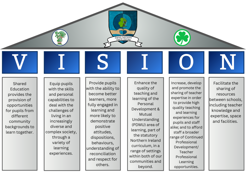 Broughshane Primary School is situated in the village of Broughshane, three and a half miles north east of Ballymena. St. Patrick’s Primary School is situated in the village of Loughguile, eight miles east of Ballymoney. Geographically, the schools are fifteen miles apart and both in rural communities.